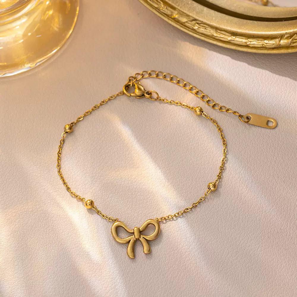 Embrace the “Coquette” aesthetic with our Golden Bow Charm Bracelet. Designed for the modern minimalist, this piece offers a refined way to wear one of fashion’s most timeless symbols. The high-shine finish and delicate bead accents make it look and feel like a boutique luxury find.