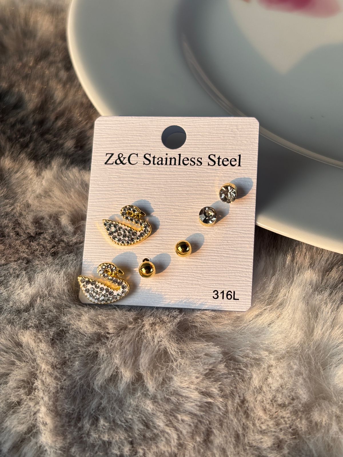 Add a touch of whimsical luxury to your jewelry collection with our Sparkling Swan 3-Pair Earring Set. Featuring the swan—a timeless symbol of grace and beauty—this collection is perfect for those who love intricate details and versatile accessories.